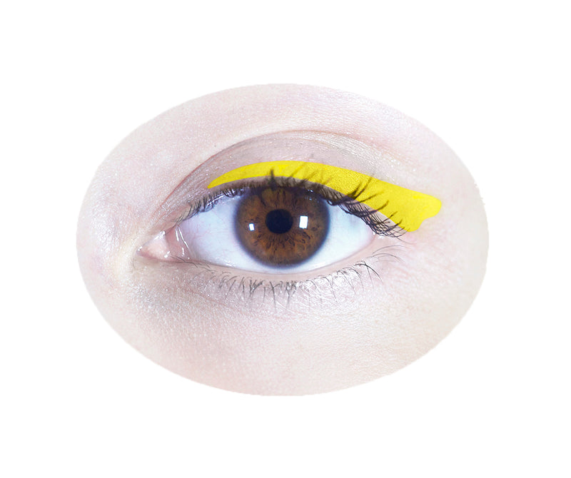 One sheet contains 12 pairs of self-adhesive, ready-to-go wing eyeliners in black, dark blue, light blue, white, yellow and green (in 4 different shapes).